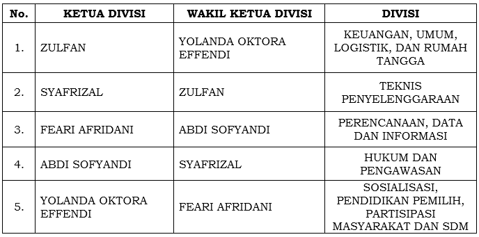 PEMBAGIAN DIVISI ANGGOTA KOMISI PEMILIHAN UMUM KOTA DUMAI PERIODE 2024 - 2029