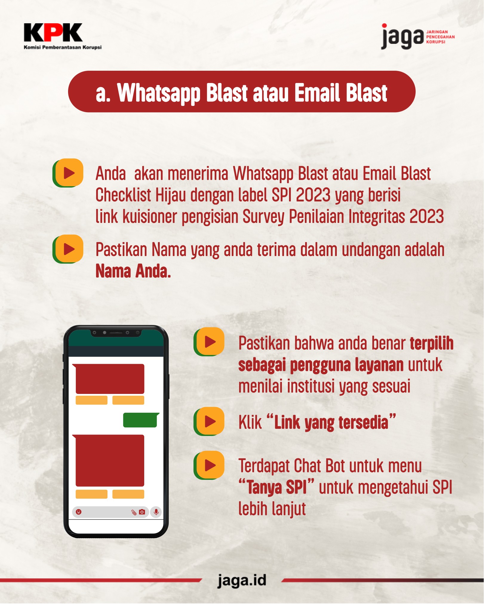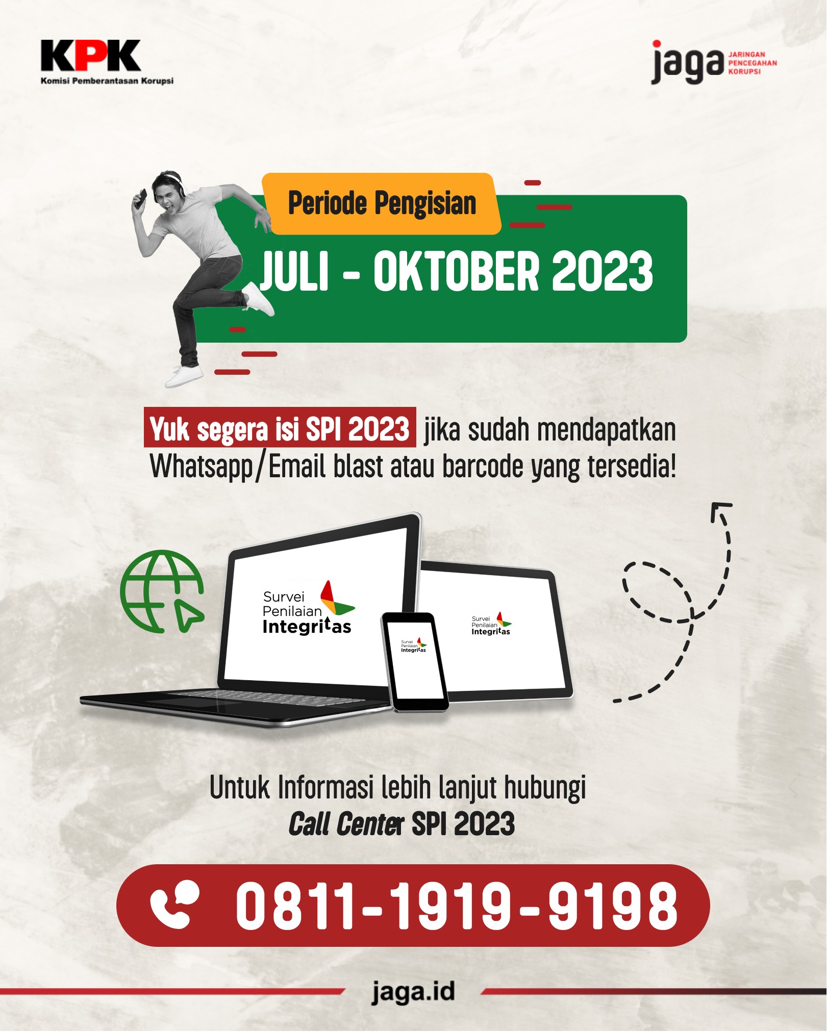 Bahwa dalam rangka upaya pemberantasan korupsi, Komisi Pemberantasan Korupsi Republik Indonesia (KPK RI) akan menyelenggarakan Survei Penilaian Integritas (SPI). Survei Penilaian Integritas merupakan survei nasional tahunan berbasis elektronik yang ditujukan kepada seluruh Kementerian/Lembaga/ Pemerintah Daerah di Indonesia termasuk pada Komisi Pemilihan Umum (KPU). Tujuan dari SPI adalah memberikan peta risiko korupsi dan saran pencegahan secara spesifik di KPU, Dalam rangka mendukung pelaksanaan Survei Penilaian Integritas (SPI) 2023 Berikut disampaikan Video SPI Tahun 2023.