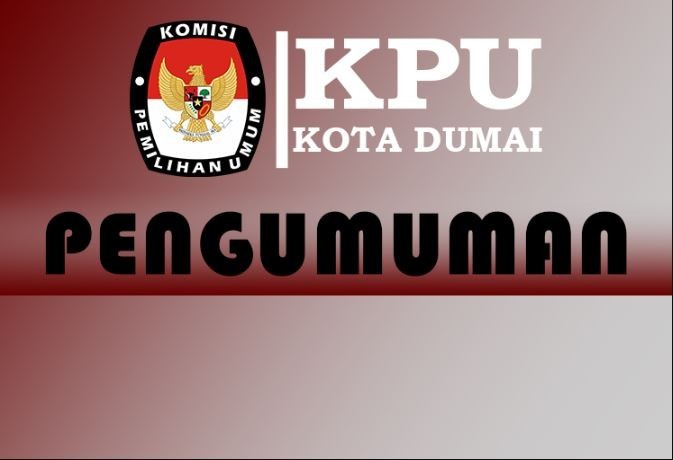 PENGUMUMAN NOMOR: 7/PP.04.2-Pu/1472/2024 TENTANG HASIL PENELITIAN ADMINISTRASI CALON ANGGOTA PANITIA PEMILIHAN KECAMATAN UNTUK PEMILIHAN GUBERNUR DAN WAKIL GUBERNUR, DAN WALI KOTA DAN WAKIL WALI KOTA PADA KOTA DUMAI TAHUN 2024 Sehubungan dengan Komisi Pemilihan Umum Kota Dumai telah melaksanakan tahapan Penelitian Administrasi Calon Anggota Panitia Pemilihan Kecamatan untuk Pemilihan Gubernur dan Wakil Gubernur, dan Wali Kota dan Wakil Wali Kota Tahun 2024, disampaikan beberapa hal sebagai berikut: Pelaksanaan Pendaftaran dan Penelitian Administrasi Calon Anggota Panitia Pemilihan Kecamatan untuk Pemilihan Gubernur dan Wakil Gubernur, dan Wali Kota dan Wakil Wali Kota Tahun 2024 telah dilaksanakan pada tanggal 24 April 2024 sampai dengan tanggal 3 Mei 2024 bertempat di Kantor Komisi Pemilihan Umum Kota Dumai Hasil Penelitian Administrasi Calon Anggota Panitia Pemilihan Kecamatan untuk Pemilihan Gubernur dan Wakil Gubernur, dan Wali Kota dan Wakil Wali Kota Tahun 2024 adalah 138 (seratus tiga puluh delapan) orang yang dinyatakan Memenuhi Syarat dan 6 (enam) orang yang dinyatakan Tidak Memenuhi Syarat, sebagaimana data terlampir. Sehubungan dengan hal tersebut di atas, Komisi Pemilihan Umum Kota Dumai mengundang calon anggota Panitia Pemilihan Kecamatan yang dinyatakan Memenuhi Syarat untuk hadir dan mengikuti Seleksi Tertulis Calon Anggota Panitia Pemilihan Kecamatan pada : Hari, Tanggal : Senin, 6 Mei 2024 Pukul : 09.30 Wib s.d Selesai Tempat : Laboratorium Komputer Universitas Dumai Alamat : Jl. Utama Karya, Bukit Batrem Kota Dumai Pakaian : Kemeja Putih dan celana/rok hitam, memakai sepatu. Informasi Selengkapnya Klik Disini