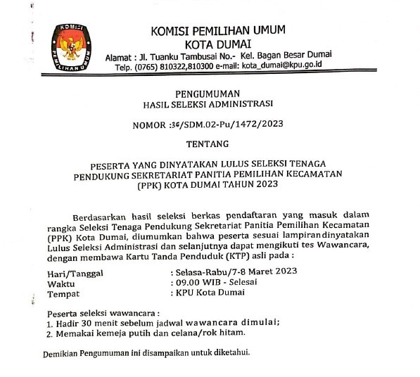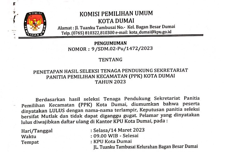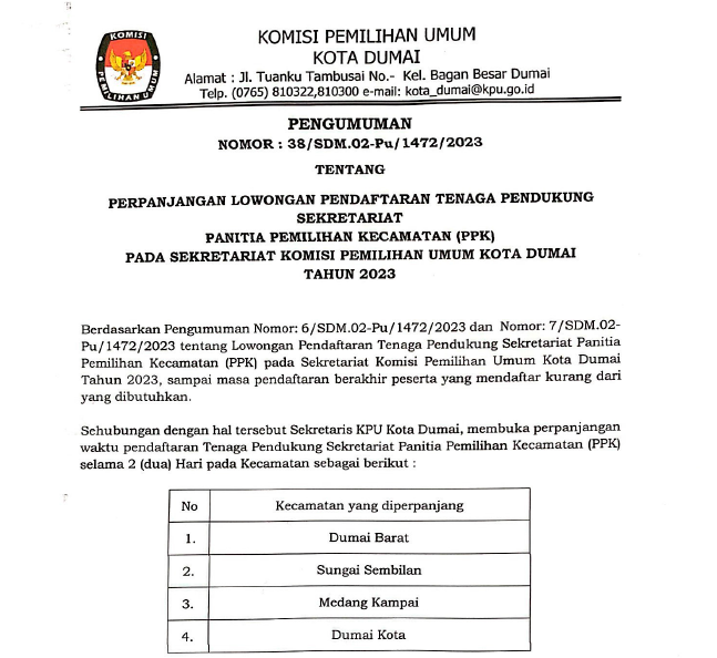 PENGUMUMAN PENGAJUAN BACALON DPRD KOTA DUMAI UNTUK PEMILU SERENTAK TAHUN 2024